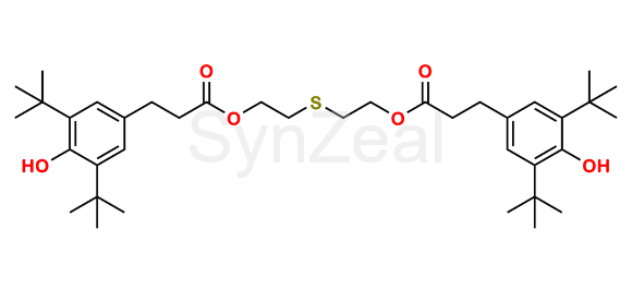 2,2'-Thiodiethylene Bis[3-(3,5-di-tert-butyl-4-hydroxyphenyl)propionate] is chemically 2,2'-Thiodiethylene Bis[3-(3,5-di-tert-butyl-4-hydroxyphenyl),propionate]; 3,5-Bis(1,1-dimethylethyl)-4-hydroxybenzenepropanoic acid,thiodi-2,1-ethanediyl ester ; fenozan30 ;IRGANOX 1035 ;. 2,2'-Thiodiethylene Bis[3-(3,5-di-tert-butyl-4-hydroxyphenyl)propionate] is supplied with detailed characterization data compliant with regulatory guideline. 2,2'-Thiodiethylene Bis[3-(3,5-di-tert-butyl-4-hydroxyphenyl)propionate] can be used for the analytical method development, method validation (AMV), Quality Controlled (QC) application for Abbreviated New Drug Application (ANDA) or during commercial production of Miscellaneous.