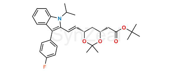 Nome Químico: Tert-butyl 2-((4R,6S)-6-((E)-2-(3-(4-fluorophenyl)-1-isopropyl-1H-indol-2-yl)vinyl)-2,2-dimethyl-1,3-dioxan-4-yl)acetate
