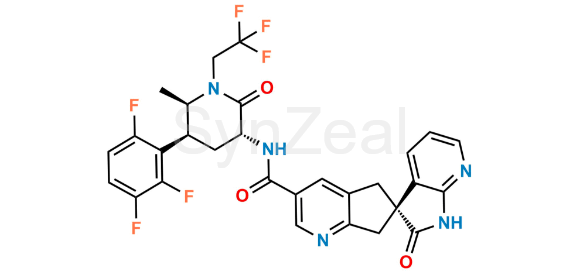 Nome Químico: (S)-N-((3R,5S,6R)-6-methyl-2-oxo-1-(2,2,2-trifluoroethyl)-5-(2,3,6-trifluorophenyl)piperidin-3-yl)-2'-oxo-1',2',5,7-tetrahydrospiro[cyclopenta[b]pyridine-6,3'-pyrrolo[2,3-b]pyridine]-3-carboxamide