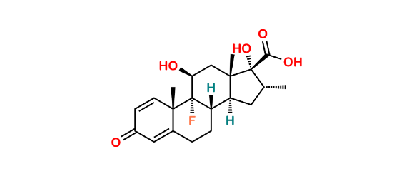 Nome Químico: (8S,9R,10S,11S,13S,14S,16R,17R)-9-fluoro-11,17-dihydroxy-10,13,16-trimethyl-3-oxo-6,7,8,9,10,11,12,13,14,15,16,17- dodecahydro-3H-cyclopenta[a]phenanthrene-17-carboxylic acid; 9-Fluoro-11β,17α-dihydroxy-16α-methylandrosta-1,4- diene-3-one-17β-carboxylic acid (as per USP)