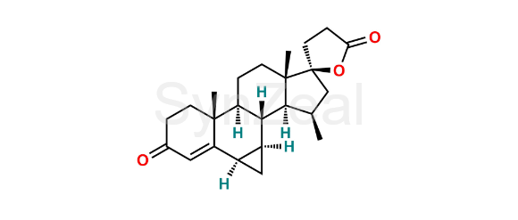 Nome Químico: 15β-methyl-3-oxo-6α,7α-dihydro-3′H-cyclopropa[6,7]-17α-pregn-4-ene-21,17-carbolactone (as per EP) ; 17-Hydroxy-15β-methyl-6β,7β-methylene-3-oxo-17α-pregn-4-ene-21-carboxylic acid, γ-lactone (as per USP)