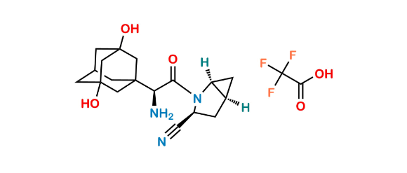 Hydroxy Saxagliptin is chemically (1S,3S,5S)-2-[(2S)-2-Amino-2-(3,5-dihydroxytricyclo[3.3.1.13,7]dec-1-yl)acetyl]-2-Azabicyclo[3.1.0]hexane-3-carbonitrile 2,2,2-trifluoroacetate ; M2 Saxagliptin Hydroxylated Metabolite; (1S,3S,5S)-2-((S)-2-amino-2-((1r,3R,5S,7S)-3,5-dihydroxyadamantan-1-yl)acetyl)-2-azabicyclo[3.1.0]hexane-3-carbonitrile 2,2,2-trifluoroacetate ;. It is also known as 5-Hydroxy Saxagliptin. Hydroxy Saxagliptin is supplied with detailed characterization data compliant with regulatory guideline. Hydroxy Saxagliptin can be used for the analytical method development, method validation (AMV), Quality Controlled (QC) application for Abbreviated New Drug Application (ANDA) or during commercial production of Saxagliptin.