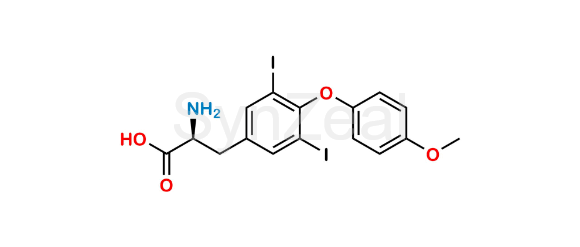 L-Tyrosine,3,5-diiodo-o-(4-Methoxyphenyl) is chemically L-Tyrosine,3,5-diiodo-o-(4-Methoxyphenyl);Levothyroxine Related Compound (2-Amino-3-(3,5-diiodo-4-(4-methoxyphenoxy)phenyl)propanoic acid). L-Tyrosine,3,5-diiodo-o-(4-Methoxyphenyl) is supplied with detailed characterization data compliant with regulatory guideline. L-Tyrosine,3,5-diiodo-o-(4-Methoxyphenyl) can be used for the analytical method development, method validation (AMV), Quality Controlled (QC) application for Abbreviated New Drug Application (ANDA) or during commercial production of Levothyroxine.