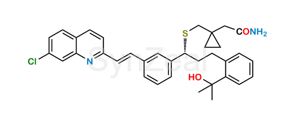 Montelukast Amide is chemically 1-[[[(1R)-1-[3-[(1E)-2-(7-Chloro-2-quinolinyl)ethenyl]phenyl]-3-[2-(1-hydroxy-1-methylethyl) phenyl] propyl] thio] methyl] cyclopropaneacetamide. It is also known as Montelukast Amide. Montelukast Amide is supplied with detailed characterization data compliant with regulatory guideline. Montelukast Amide can be used for the analytical method development, method validation (AMV), Quality Controlled (QC) application for Abbreviated New Drug Application (ANDA) or during commercial production of Montelukast.