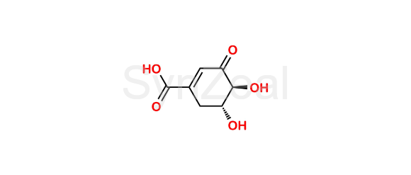 Oseltamivir Impurity 45 is chemically (4S,5R)-4,5-dihydroxy-3-oxocyclohex-1-ene-1-carboxylic acid. Oseltamivir Impurity 45 is supplied with detailed characterization data compliant with regulatory guideline. Oseltamivir Impurity 45 can be used for the analytical method development, method validation (AMV), Quality Controlled (QC) application for Abbreviated New Drug Application (ANDA) or during commercial production of Oseltamivir.
