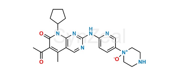 Palbociclib Piperazine N-Oxide is chemically 1-(6-((6-acetyl-8-cyclopentyl-5-methyl-7-oxo-7,8-dihydropyrido[2,3-d]pyrimidin-2-yl)amino)pyridin-3-yl)piperazine 1-oxide. Palbociclib Piperazine N-Oxide is supplied with detailed characterization data compliant with regulatory guideline. Palbociclib Piperazine N-Oxide can be used for the analytical method development, method validation (AMV), Quality Controlled (QC) application for Abbreviated New Drug Application (ANDA) or during commercial production of Palbociclib.