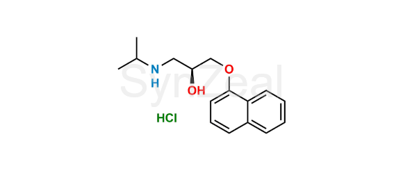 (S)-Propranolol Hydrochloride is chemically (S)-1-(isopropylamino)-3-(naphthalen-1-yloxy)propan-2-ol hydrochloride. (S)-Propranolol Hydrochloride is supplied with detailed characterization data compliant with regulatory guideline. (S)-Propranolol Hydrochloride can be used for the analytical method development, method validation (AMV), Quality Controlled (QC) application for Abbreviated New Drug Application (ANDA) or during commercial production of Propranolol.
