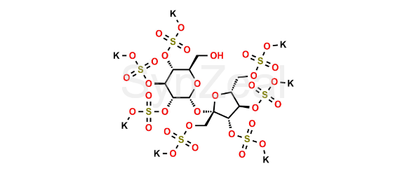 Nome Químico: 1,3,4,6-Tetra-O-sulfo-β-D-fructofuranosyl α-D-Glucopyranoside 2,3,4-Tris(hydrogen sulfate) Heptapotassium Salt ; potassium (2R,3R,4S,5R,6R)-2-(((2S,3S,4R,5R)-3,4-bis(sulfonatooxy)-2,5-bis((sulfonatooxy)methyl)tetrahydrofuran-2-yl)oxy)-6-(hydroxymethyl)tetrahydro-2H-pyran-3,4,5-triyl tris(sulfate)