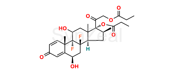 11-Oxo- Betamethasone 17,21 Dipropionate 6α-Hydroxy betamethasone 17,21 dipropionate is chemically (6R,8R,9R,10S,14R,16S,17R)-8,9-difluoro-6,11-dihydroxy-10,13,16-trimethyl-3-oxo-17-(2-(propionyloxy)acetyl)-6,7,8,9,10,11,12,13,14,15,16,17-dodecahydro-3H-cyclopenta[a]phenanthren-17-yl propionate. 11-Oxo- Betamethasone 17,21 Dipropionate 6α-Hydroxy betamethasone 17,21 dipropionate is supplied with detailed characterization data compliant with regulatory guideline. 11-Oxo- Betamethasone 17,21 Dipropionate 6α-Hydroxy betamethasone 17,21 dipropionate can be used for the analytical method development, method validation (AMV), Quality Controlled (QC) application for Abbreviated New Drug Application (ANDA) or during commercial production of Betamethasone.