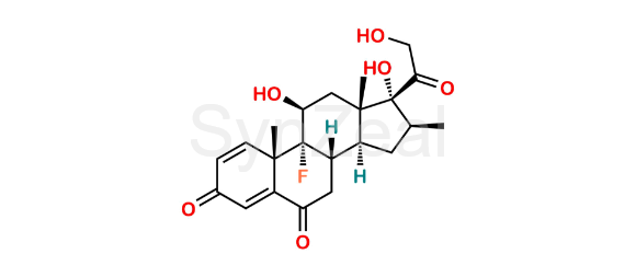 6-Keto Betamethasone is chemically (8S,9R,10S,11S,13S,14S,16S,17R)-9-Fluoro-11,17-dihydroxy-17-(2-hydroxyacetyl)-10,13,16-trimethyl-8,9,10,11,12,13,14,15,16,17-decahydro-3H-cyclopenta[a]phenanthrene-3,6(7H)-dione. 6-Keto Betamethasone is supplied with detailed characterization data compliant with regulatory guideline. 6-Keto Betamethasone can be used for the analytical method development, method validation (AMV), Quality Controlled (QC) application for Abbreviated New Drug Application (ANDA) or during commercial production of Betamethasone.