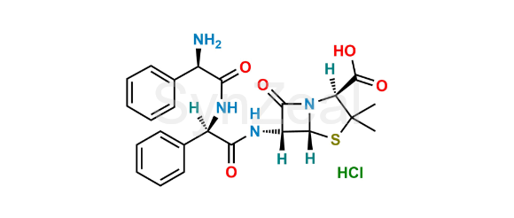 Ampicillin EP Impurity I HCl is chemically (2S,5R,6R)-6-[[(2R)-2-[[(2R)-2-Amino-2-phenylacetyl] amino]-2-phenylacetyl]amino]-3,3-dimethyl-7-oxo-4-thia-1-azabicyclo[3.2.0]heptane-2-carboxylic acid hydrochloride. It is also known as D-Phenylglycylampicillin. Ampicillin EP Impurity I HCl is supplied with detailed characterization data compliant with regulatory guideline. Ampicillin EP Impurity I HCl can be used for the analytical method development, method validation (AMV), Quality Controlled (QC) application for Abbreviated New Drug Application (ANDA) or during commercial production of Ampicillin.