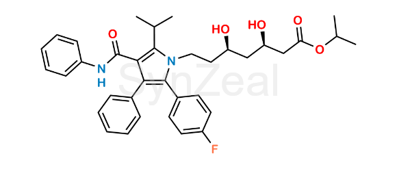Atorvastatin Acid Isopropyl Ester is chemically (3R,5R)-7-[3-(Phenylcarbamoyl)-5-(4-fluorophenyl)-2-isopropyl-4-phenyl-1H-pyrrol-1-yl]-3,5-dihydroxyheptanoic acid isopropyl ester. It is also known as Atorvastatin Isopropyl Ester. Atorvastatin Acid Isopropyl Ester is supplied with detailed characterization data compliant with regulatory guideline. Atorvastatin Acid Isopropyl Ester can be used for the analytical method development, method validation (AMV), Quality Controlled (QC) application for Abbreviated New Drug Application (ANDA) or during commercial production of Atorvastatin.