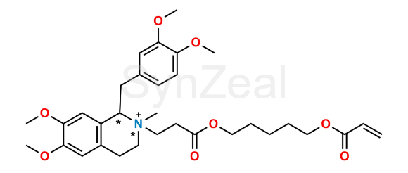 Atracurium EP impurity C is chemically 1-(3,4-dimethoxybenzyl)-2-(3,11-dioxo-4,10-dioxatridec-12-enyl)-6,7-dimethoxy-2-methyl-1,2,3,4-tetrahydroisoquinolinium (as per EP & USP). Atracurium EP impurity C is supplied with detailed characterization data compliant with regulatory guideline. Atracurium EP impurity C can be used for the analytical method development, method validation (AMV), Quality Controlled (QC) application for Abbreviated New Drug Application (ANDA) or during commercial production of Atracurium.