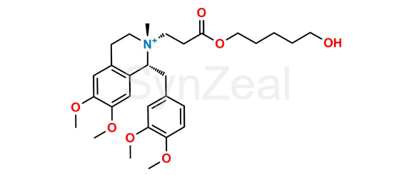 Atracurium Impurity D2 (cis-Quaternary Alcohol) is chemically (1R,2R)-1-(3,4-dimethoxybenzyl)-2-(3-((5-hydroxypentyl)oxy)-3-oxopropyl)-6,7-dimethoxy-2-methyl-1,2,3,4-tetrahydroisoquinolin-2-ium. Atracurium Impurity D2 (cis-Quaternary Alcohol) is supplied with detailed characterization data compliant with regulatory guideline. Atracurium Impurity D2 (cis-Quaternary Alcohol) can be used for the analytical method development, method validation (AMV), Quality Controlled (QC) application for Abbreviated New Drug Application (ANDA) or during commercial production of Atracurium.