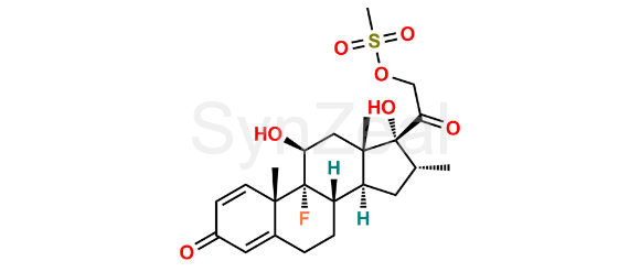Dexamethasone 21-Mesylate is chemically 2-((8S,9R,10S,11S,13S,14S,16R,17R)-9-fluoro-11,17-dihydroxy-10,13,16-trimethyl-3-oxo-6,7,8,9,10,11,12,13,14,15,16,17-dodecahydro-3H-cyclopenta[a]phenanthren-17-yl)-2-oxoethyl methanesulfonate. Dexamethasone 21-Mesylate is supplied with detailed characterization data compliant with regulatory guideline. Dexamethasone 21-Mesylate can be used for the analytical method development, method validation (AMV), Quality Controlled (QC) application for Abbreviated New Drug Application (ANDA) or during commercial production of Dexamethasone.