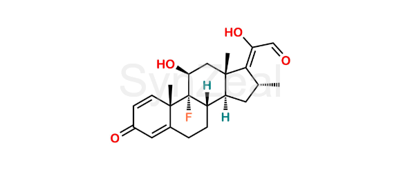 Dexamethasone Enol-Pyruvaldehyde Analog is chemically (Z)-2-((8S,9R,10S,11S,13S,14S,16R)-9-Fluoro-11-hydroxy-10,13,16-trimethyl-3-oxo-3,6,7,8,9,10,11,12,13,14,15,16-dodecahydro-17H-cyclopenta[a]phenanthren-17-ylidene)-2-hydroxyacetaldehyde. Dexamethasone Enol-Pyruvaldehyde Analog is supplied with detailed characterization data compliant with regulatory guideline. Dexamethasone Enol-Pyruvaldehyde Analog can be used for the analytical method development, method validation (AMV), Quality Controlled (QC) application for Abbreviated New Drug Application (ANDA) or during commercial production of Dexamethasone.
