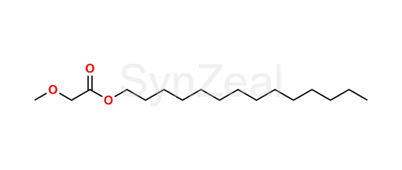 Methoxy Acetic Acid, Tetradecyl Ester is chemically Tetradecyl 2-methoxyacetate. Methoxy Acetic Acid, Tetradecyl Ester is supplied with detailed characterization data compliant with regulatory guideline. Methoxy Acetic Acid, Tetradecyl Ester can be used for the analytical method development, method validation (AMV), Quality Controlled (QC) application for Abbreviated New Drug Application (ANDA) or during commercial production of Miscellaneous.