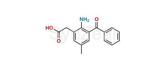 Nepafenac Impurity 4 is chemically 2-(2-amino-3-benzoyl-5-methylphenyl)acetic acid. Nepafenac Impurity 4 is supplied with detailed characterization data compliant with regulatory guideline. Nepafenac Impurity 4 can be used for the analytical method development, method validation (AMV), Quality Controlled (QC) application for Abbreviated New Drug Application (ANDA) or during commercial production of Nepafenac.