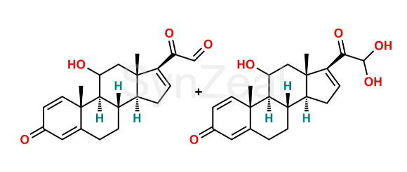 Prednisolone Impurity 13 is chemically 2-((8S,9S,10R,13S,14S)-11-hydroxy-10,13-dimethyl-3-oxo-6,7,8,9,10,11,12,13,14,15-decahydro-3H-cyclopenta[a]phenanthren-17-yl)-2-oxoacetaldehyde. Prednisolone Impurity 13 is supplied with detailed characterization data compliant with regulatory guideline. Prednisolone Impurity 13 can be used for the analytical method development, method validation (AMV), Quality Controlled (QC) application for Abbreviated New Drug Application (ANDA) or during commercial production of Prednisolone.