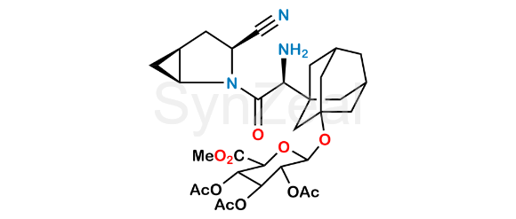 Saxagliptin Triacetyl-Ο-β-Glucuronide Methyl Ester is chemically (2S,3R,5S,6S)-2-(((1R,3S,5R,7S)-3-((S)-1-Amino-2-((1S,3S,5S)-3-cyano-2-azabicyclo[3.1.0]hexan-2-yl)-2-oxoethyl)adamantan-1-yl)oxy)-6-(methoxycarbonyl)tetrahydro-2H-pyran-3,4,5-triyl triacetate. Saxagliptin Triacetyl-Ο-β-Glucuronide Methyl Ester is supplied with detailed characterization data compliant with regulatory guideline. Saxagliptin Triacetyl-Ο-β-Glucuronide Methyl Ester can be used for the analytical method development, method validation (AMV), Quality Controlled (QC) application for Abbreviated New Drug Application (ANDA) or during commercial production of Saxagliptin.