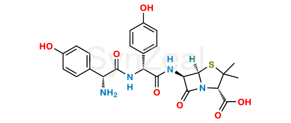Chemical Name: (2S,5R,6R)-6-[[(2R)-2-[[(2R)-2-Amino-2-(4-hydroxyphenyl)acetyl]amino]-2-(4-hydroxy-phenyl)acetyl]amino]-3,3-dimethyl-7-oxo-4-thia-1-azabicyclo[3.2.0]heptane-2-carboxylic acid (as per EP); (2S,5R,6R)-6-{(R)-2-[(R)-2-Amino-2-(4-hydroxyphenyl)acetamido]-2-(4-hydroxyphenyl)acetamido}-3,3-dimethyl-7-oxo-4-thia-1-azabicyclo[3.2.0]heptane-2-carboxylic acid (as per USP)