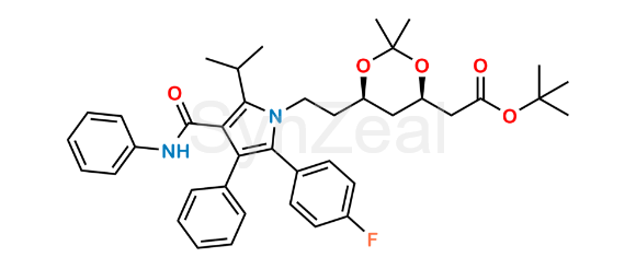 Chemical Name: tert-butyl [(4R,6R)-6-[2-[2-(4-fluorophenyl)-3-phenyl-4-(phenylcarbamoyl)-5-(propan-2-yl)-1H-pyrrol-1-yl]ethyl]-2,2-dimethyl-1,3-dioxan-4-yl]acetate (as per EP); tert-Butyl 2-((4R,6R)-6-{2-[2-(4-fluorophenyl)-5-isopropyl-3-phenyl-4-(phenylcarbamoyl)-1H-pyrrol-1-yl]ethyl}-2,2-dimethyl-1,3-dioxan-4-yl)acetate (as per USP)