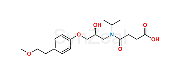 Metoprolol Succinamide is chemically 3-(N-((S)-3-(4-(2-Methoxyethyl) phenoxy)-2-hydroxypropyl)-N-isopropylcarbamoyl)propanoic acid. Metoprolol Succinamide is supplied with detailed characterization data compliant with regulatory guideline. Metoprolol Succinamide can be used for the analytical method development, method validation (AMV), Quality Controlled (QC) application for Abbreviated New Drug Application (ANDA) or during commercial production of Metoprolol.