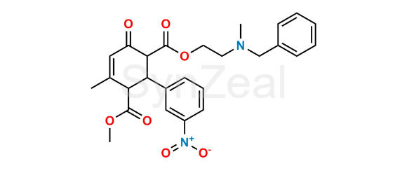 Nicardipine Impurity 5 is chemically 2-(2-(Benzyl(methyl)amino)ethyl) 6-methyl 5-methyl-3'-nitro-3-oxo-1,2,3,6-tetrahydro-[1,1'-biphenyl]-2,6-dicarboxylate. Nicardipine Impurity 5 is supplied with detailed characterization data compliant with regulatory guideline. Nicardipine Impurity 5 can be used for the analytical method development, method validation (AMV), Quality Controlled (QC) application for Abbreviated New Drug Application (ANDA) or during commercial production of Nicardipine.