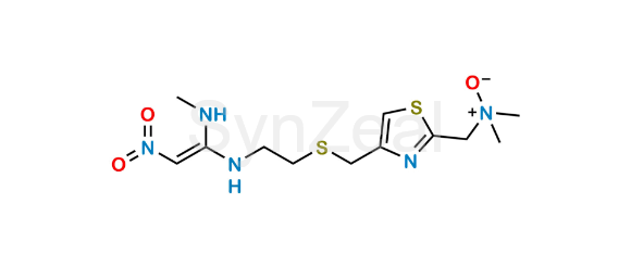 Nizatidine N-Oxide is chemically (E)-N,N-dimethyl-1-(4-(((2-((1-(methylamino)-2-nitrovinyl)amino)ethyl)thio)methyl)thiazol-2-yl)methanamine oxide. Nizatidine N-Oxide is supplied with detailed characterization data compliant with regulatory guideline. Nizatidine N-Oxide can be used for the analytical method development, method validation (AMV), Quality Controlled (QC) application for Abbreviated New Drug Application (ANDA) or during commercial production of Nizatidine.