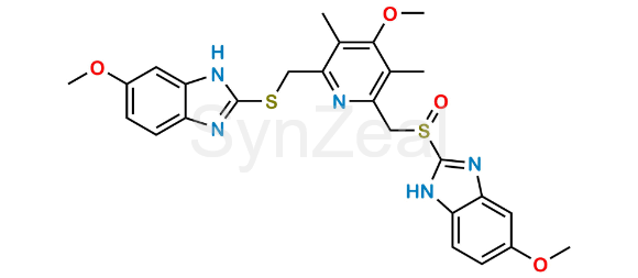 Omeprazole Dimer Impurity is chemically 6-Methoxy-2-(((4-methoxy-6-(((5-methoxy-1H-benzo[d]imidazole-2-yl)sulfinyl)methyl)3,5-dimethylpyridin-2-yl)methyl)thio)-1H-benzo[d]imidazole. Omeprazole Dimer Impurity is supplied with detailed characterization data compliant with regulatory guideline. Omeprazole Dimer Impurity can be used for the analytical method development, method validation (AMV), Quality Controlled (QC) application for Abbreviated New Drug Application (ANDA) or during commercial production of Omeprazole.
