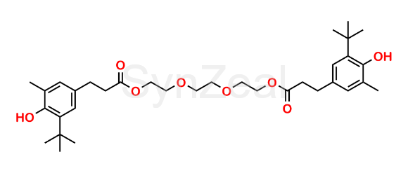 Triethylene glycol bis(3-tert-butyl-4-hydroxy-5-methylphenyl)propionate is chemically Irganox 245 . Triethylene glycol bis(3-tert-butyl-4-hydroxy-5-methylphenyl)propionate is supplied with detailed characterization data compliant with regulatory guideline. Triethylene glycol bis(3-tert-butyl-4-hydroxy-5-methylphenyl)propionate can be used for the analytical method development, method validation (AMV), Quality Controlled (QC) application for Abbreviated New Drug Application (ANDA) or during commercial production of Miscellaneous.