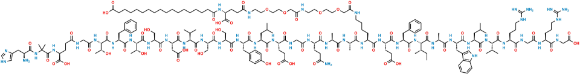Sorrisos: N[C@H](C(NC(C)(C)C(N[C@H](C(O)=O)CCC(NCC(N[C@@H]([C@@H](C)O)C(N[C@@H](CC1=CC=CC=C1)C(N[C@@H]([C@@H](C)O)C(N[C@@H](CO)C(N[C@@H](CC(O)=O)C(N[C@@H](C(C)C)C(N[C@@H](CO)C(N[C@@H](CO)C(N[C@@H](CC2=CC=C(O)C=C2)C(N[C@@H](CC(C)C)C(N[C@@H](CCC(O)=O)C(NCC(N[C@@H](CCC(N)=O)C(N[C@@H](C)C(N[C@@H](C)C(N[C@@H](CCCCNC(COCCOCCNC(COCCOCCNC(CC[C@H](C(O)=O)NC(CCCCCCCCCCCCCCCCC(O)=O)=O)=O)=O)=O)C(N[C@@H](CCC(O)=O)C(N[C@@H](CC3=CC=CC=C3)C(N[C@@H]([C@@H](C)CC)C(N[C@@H](C)C(N[C@@H](CC4=CNC5=C4C=CC=C5)C(N[C@@H](CC(C)C)C(N[C@@H](C(C)C)C(N[C@@H](CCCNC(N)=N)C(NCC(N[C@@H](CCCNC(N)=N)C(NCC(O)=O)=O)=O)=O)=O)=O)=O)=O)=O)=O)=O)=O)=O)=O)=O)=O)=O)=O)=O)=O)=O)=O)=O)=O)=O)=O)=O)=O)=O)=O)=O)CC6=CNC=N6
