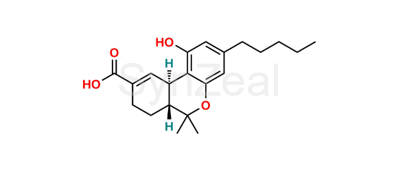 11-Nor-9-Carboxy-Δ9-Tetrahydrocannabinol is chemically (6aR,10aR)-1-Hydroxy-6,6-dimethyl-3-pentyl-6a,7,8,10a-tetrahydro-6H-benzo[c]chromene-9-carboxylic acid. 11-Nor-9-Carboxy-Δ9-Tetrahydrocannabinol is supplied with detailed characterization data compliant with regulatory guideline. 11-Nor-9-Carboxy-Δ9-Tetrahydrocannabinol can be used for the analytical method development, method validation (AMV), Quality Controlled (QC) application for Abbreviated New Drug Application (ANDA) or during commercial production of Cannabidiol.