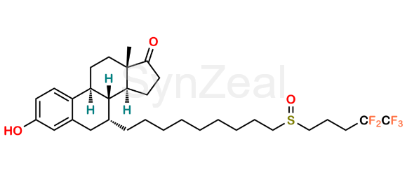 17-Keto Fulvestrant is chemically (7R,8R,9S,13S,14S)-3-Hydroxy-13-methyl-7-(9-((4,4,5,5,5-pentafluoropentyl)sulfinyl)nonyl)-6,7,8,9,11,12,13,14,15,16-decahydro-17H-cyclopenta[a]phenanthren-17-one. 17-Keto Fulvestrant is supplied with detailed characterization data compliant with regulatory guideline. 17-Keto Fulvestrant can be used for the analytical method development, method validation (AMV), Quality Controlled (QC) application for Abbreviated New Drug Application (ANDA) or during commercial production of Fulvestrant.