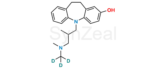 2-Hydroxy Trimipramine d3 is chemically 5-(2-methyl-3-(methyl(methyl-d3)amino)propyl)-10,11-dihydro-5H-dibenzo[b,f]azepin-2-ol. 2-Hydroxy Trimipramine d3 is supplied with detailed characterization data compliant with regulatory guideline. 2-Hydroxy Trimipramine d3 can be used for the analytical method development, method validation (AMV), Quality Controlled (QC) application for Abbreviated New Drug Application (ANDA) or during commercial production of Trimipramine.