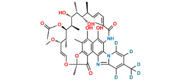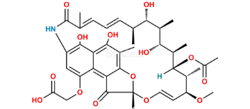 25-Desacetyl Rifaximin is chemically [2S-(2R*,16Z,18E,20R*,21R*,22S*,23S*,24S*,25R*,26R*,27R*,28E)]-5,6,21,23,25-Pentahydroxy-27-methoxy-2,4,11,16,20,22,24,26-octamethyl-2,7-(epoxypentadeca[1,11,13]trienimino)benzofuro[4,5-e]pyrido[1,2-a]benzimidazole-1,15(2H)-dione. It is also known as Rifaximin Desacetyl Impurity. 25-Desacetyl Rifaximin is supplied with detailed characterization data compliant with regulatory guideline. 25-Desacetyl Rifaximin can be used for the analytical method development, method validation (AMV), Quality Controlled (QC) application for Abbreviated New Drug Application (ANDA) or during commercial production of Rifaximin.