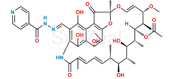 3-Formyl Rifamycin Isonicotinoyl Hydrazone is chemically 3-(Isonicotinoylhydrazonomethyl) Rifamycin. 3-Formyl Rifamycin Isonicotinoyl Hydrazone is supplied with detailed characterization data compliant with regulatory guideline. 3-Formyl Rifamycin Isonicotinoyl Hydrazone can be used for the analytical method development, method validation (AMV), Quality Controlled (QC) application for Abbreviated New Drug Application (ANDA) or during commercial production of Rifampicin.