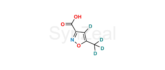 5-Methylisoxazole-3-Carboxylic-d4 Acid is chemically 5-(Methyl-d3)isoxazole-3-carboxylic-4-d acid. 5-Methylisoxazole-3-Carboxylic-d4 Acid is supplied with detailed characterization data compliant with regulatory guideline. 5-Methylisoxazole-3-Carboxylic-d4 Acid can be used for the analytical method development, method validation (AMV), Quality Controlled (QC) application for Abbreviated New Drug Application (ANDA) or during commercial production of Leflunomide.