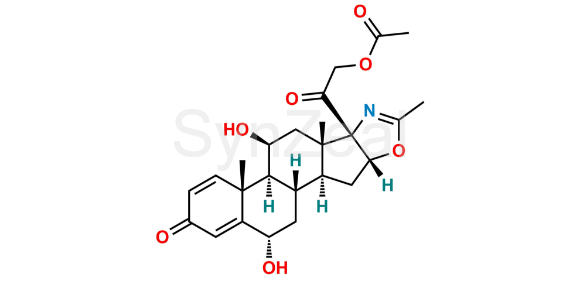 6α-Hydroxy Deflazacort is chemically 2-((2S,6aR,6bS,7S,8aS,8bS,11aR,12aS,12bS)-2,7-Dihydroxy-6a,8a,10-trimethyl-4-oxo-1,2,4,6a,6b,7,8,8a,11a,12,12a,12b-dodecahydro-8bH-naphtho[2',1':4,5]indeno[1,2-d]oxazol-8b-yl)-2-oxoethyl acetate. 6α-Hydroxy Deflazacort is supplied with detailed characterization data compliant with regulatory guideline. 6α-Hydroxy Deflazacort can be used for the analytical method development, method validation (AMV), Quality Controlled (QC) application for Abbreviated New Drug Application (ANDA) or during commercial production of Deflazacort.