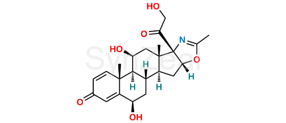 6β-Hydroxy-21-desacetyl deflazacort is chemically (2R,6aR,6bS,7S,8aS,8bS,11aR,12aS,12bS)-2,7-dihydroxy-8b-(2-hydroxyacetyl)-6a,8a,10-trimethyl-1,2,6a,6b,7,8,8a,8b,11a,12,12a,12b-dodecahydro-4H-naphtho[2',1':4,5]indeno[1,2-d]oxazol-4-one. 6β-Hydroxy-21-desacetyl deflazacort is supplied with detailed characterization data compliant with regulatory guideline. 6β-Hydroxy-21-desacetyl deflazacort can be used for the analytical method development, method validation (AMV), Quality Controlled (QC) application for Abbreviated New Drug Application (ANDA) or during commercial production of Deflazacort.