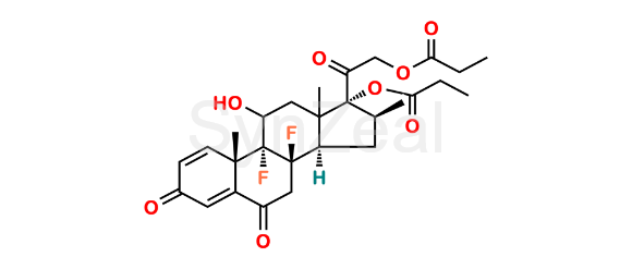 6-Oxo-Betamethasone 17,21 Dipropionate is chemically (8R,9R,10S,14R,16S,17R)-8,9-difluoro-11-hydroxy-10,13,16-trimethyl-3,6-dioxo-17-(2-(propionyloxy)acetyl)-6,7,8,9,10,11,12,13,14,15,16,17-dodecahydro-3H-cyclopenta[a]phenanthren-17-yl propionate. 6-Oxo-Betamethasone 17,21 Dipropionate is supplied with detailed characterization data compliant with regulatory guideline. 6-Oxo-Betamethasone 17,21 Dipropionate can be used for the analytical method development, method validation (AMV), Quality Controlled (QC) application for Abbreviated New Drug Application (ANDA) or during commercial production of Betamethasone.