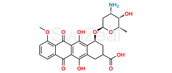 9-Carboxy Doxorubicin Impurity 2 is chemically (4S)-4-(((2R,4S,5S,6S)-4-Amino-5-hydroxy-6-methyltetrahydro-2H-pyran-2-yl)oxy)-5,12-dihydroxy-7-methoxy-6,11-dioxo-1,2,3,4,6,11-hexahydrotetracene-2-carboxylic acid. 9-Carboxy Doxorubicin Impurity 2 is supplied with detailed characterization data compliant with regulatory guideline. 9-Carboxy Doxorubicin Impurity 2 can be used for the analytical method development, method validation (AMV), Quality Controlled (QC) application for Abbreviated New Drug Application (ANDA) or during commercial production of Doxorubicin.