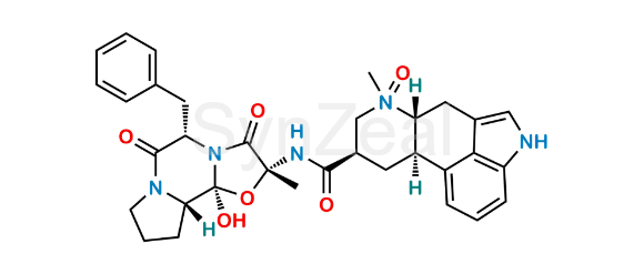 9,10-Dihydroergotamine N-Oxide is chemically (6aR,9R,10aR)-9-(((2R,5S,10aS,10bS)-5-benzyl-10b-hydroxy-2-methyl-3,6-dioxooctahydro-8H-oxazolo[3,2-a]pyrrolo[2,1-c]pyrazin-2-yl)carbamoyl)-7-methyl-4,6,6a,7,8,9,10,10a-octahydroindolo[4,3-fg]quinoline 7-oxide. 9,10-Dihydroergotamine N-Oxide is supplied with detailed characterization data compliant with regulatory guideline. 9,10-Dihydroergotamine N-Oxide can be used for the analytical method development, method validation (AMV), Quality Controlled (QC) application for Abbreviated New Drug Application (ANDA) or during commercial production of Dihydroergotamine.