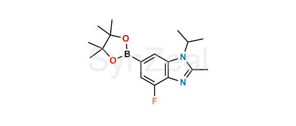 Abemaciclib Impurity 10 is chemically 4-Fluoro-1-isopropyl-2-methyl-6-(4,4,5,5-tetramethyl-1,3,2-dioxaborolan-2-yl)-1H-benzo[d]imidazole. Abemaciclib Impurity 10 is supplied with detailed characterization data compliant with regulatory guideline. Abemaciclib Impurity 10 can be used for the analytical method development, method validation (AMV), Quality Controlled (QC) application for Abbreviated New Drug Application (ANDA) or during commercial production of Abemaciclib.
