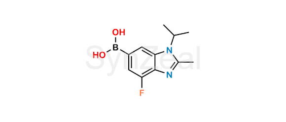 Abemaciclib Impurity 27 is chemically (4-Fluoro-1-isopropyl-2-methyl-1H-benzo[d]imidazol-6-yl)boronic acid. Abemaciclib Impurity 27 is supplied with detailed characterization data compliant with regulatory guideline. Abemaciclib Impurity 27 can be used for the analytical method development, method validation (AMV), Quality Controlled (QC) application for Abbreviated New Drug Application (ANDA) or during commercial production of Abemaciclib.