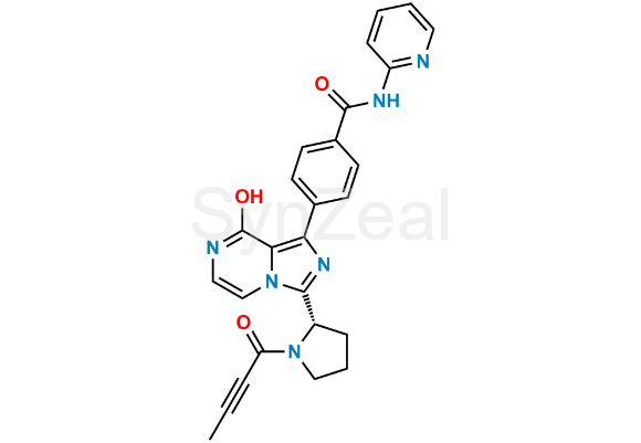 Acalabrutinib 8-Hydroxy Impurity is chemically (S)-4-(3-(1-(But-2-ynoyl)pyrrolidin-2-yl)-8-hydroxyimidazo[1,5-a]pyrazin-1-yl)-N-(pyridin-2-yl)benzamide. Acalabrutinib 8-Hydroxy Impurity is supplied with detailed characterization data compliant with regulatory guideline. Acalabrutinib 8-Hydroxy Impurity can be used for the analytical method development, method validation (AMV), Quality Controlled (QC) application for Abbreviated New Drug Application (ANDA) or during commercial production of Acalabrutinib.