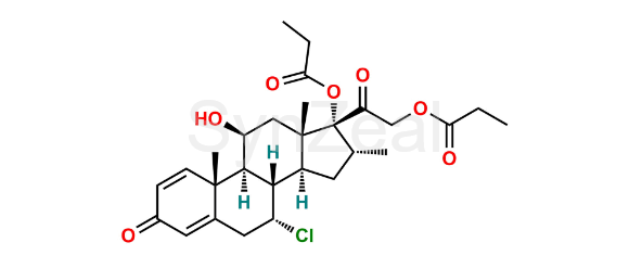Nome Químico: Pregna-1,4-diene-3,20-dione, 7-chloro-11-hydroxy-16-methyl-17,21-bis(1-oxopropoxy)-, (7α,11β,16α) (as per USP)