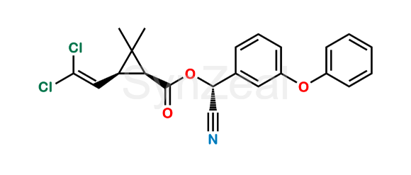 alpha-Cypermethrin is chemically (R)-cyano(3-phenoxyphenyl)methyl (1S,3S)-3-(2,2-dichlorovinyl)-2,2-dimethylcyclopropane-1-carboxylate. alpha-Cypermethrin is supplied with detailed characterization data compliant with regulatory guideline. alpha-Cypermethrin can be used for the analytical method development, method validation (AMV), Quality Controlled (QC) application for Abbreviated New Drug Application (ANDA) or during commercial production of Permethrin.