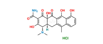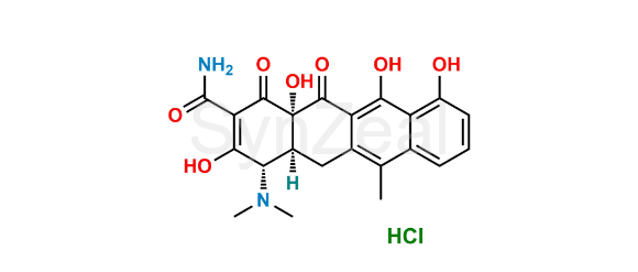 Nome Químico: (4S ,4aS ,12aS)-4-(Dimethylamino)-3,10,11,12a-tetrahydroxy-6-methyl-1,12-dioxo-1,4,4a,5,12,12a-hexahydrotetracene-2-carboxamide monohydrochloride (as per USP)