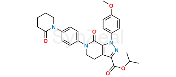 Apixaban Isopropyl Ester Impurity is chemically 4,5,6,7-Tetrahydro-1-(4-methoxyphenyl)-7-oxo-6-[4-(2-oxo-1-piperidinyl) phenyl]-1H-pyrazolo[3,4-c]pyridine-3-carboxylic acid isopropyl ester . Apixaban Isopropyl Ester Impurity is supplied with detailed characterization data compliant with regulatory guideline. Apixaban Isopropyl Ester Impurity can be used for the analytical method development, method validation (AMV), Quality Controlled (QC) application for Abbreviated New Drug Application (ANDA) or during commercial production of Apixaban.